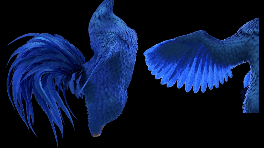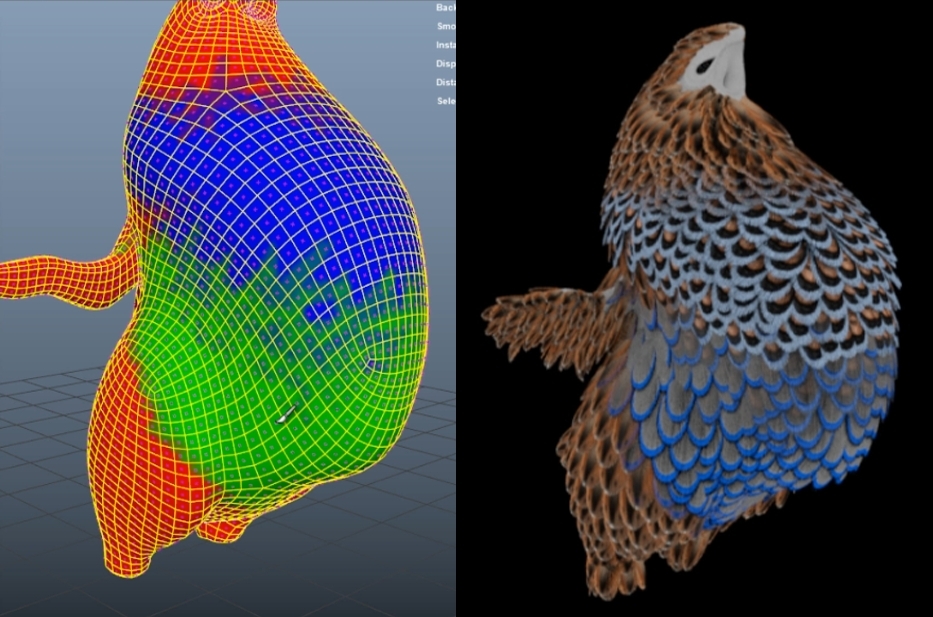 Create dense Short Feathers, which are distributed all over the Bird's body, these feathers would move with the deforming body/skin of the character and they are animated.